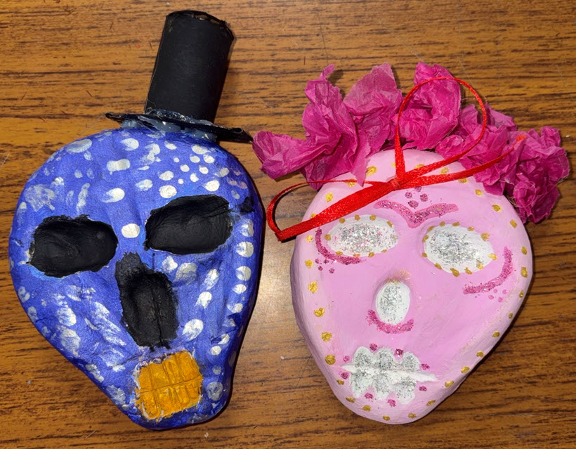 Year 8 pupils have been learning about the lively and colourful traditions of the Day of the Dead. Their project involved designing and sculpting unique sugar skulls from clay. They began by researching the festival’s origins and meaning, focusing on the decorative motifs and floral designs found in traditional sugar skulls. After sketching their ideas, they brought them to life in three dimensions. This work strengthened their sculpting and painting skills and encouraged thoughtful reflection on how different cultures celebrate life and death through creativity and colour.